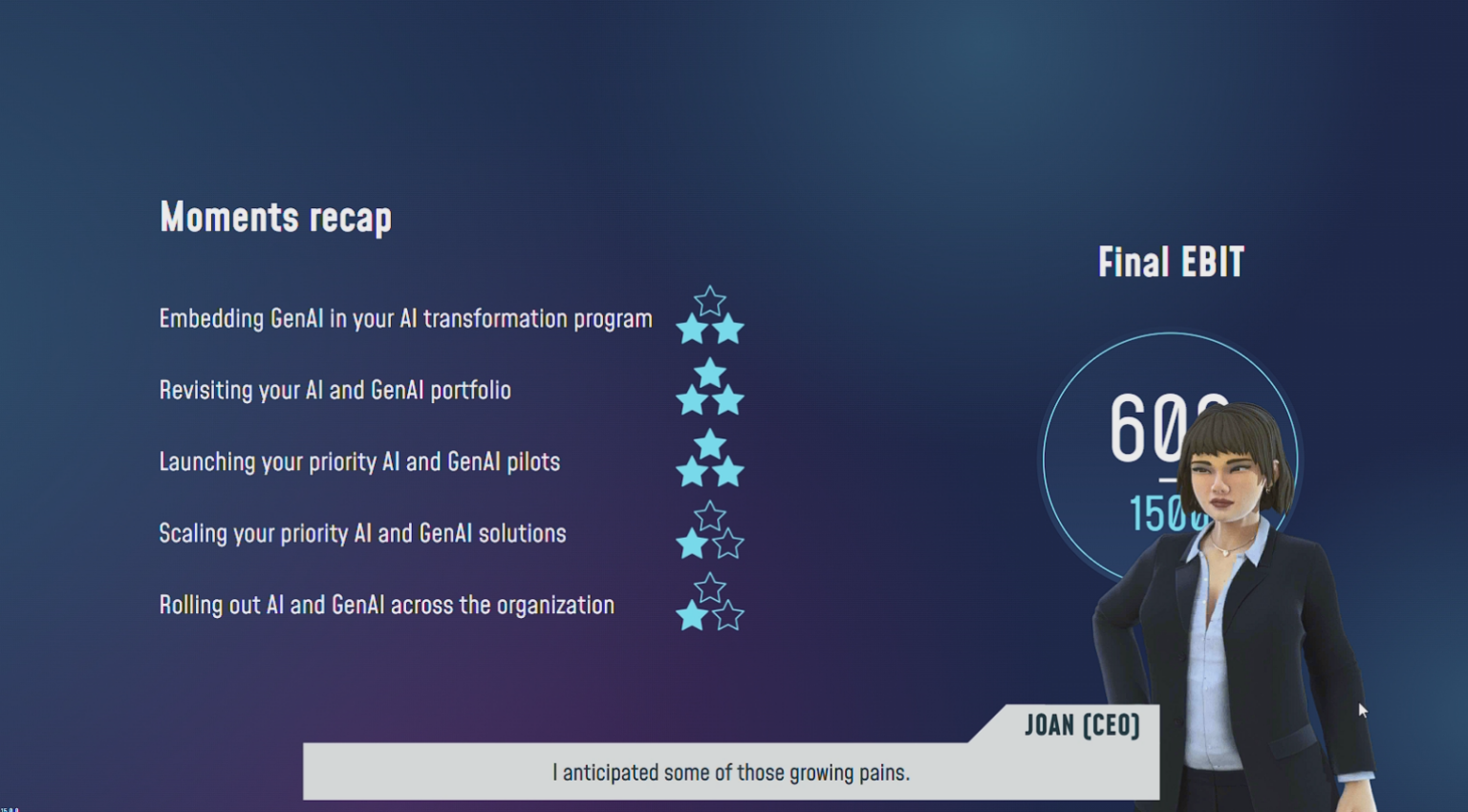 Facilité par les consultants BCG, le jeu sert de support à l’échange, à l’analyse des résultats et au débriefing stratégique. L’ensemble vise à renforcer la compréhension globale des enjeux, à éviter les écueils classiques et à favoriser une appropriation concrète des principes d’une transformation analytique réussie.